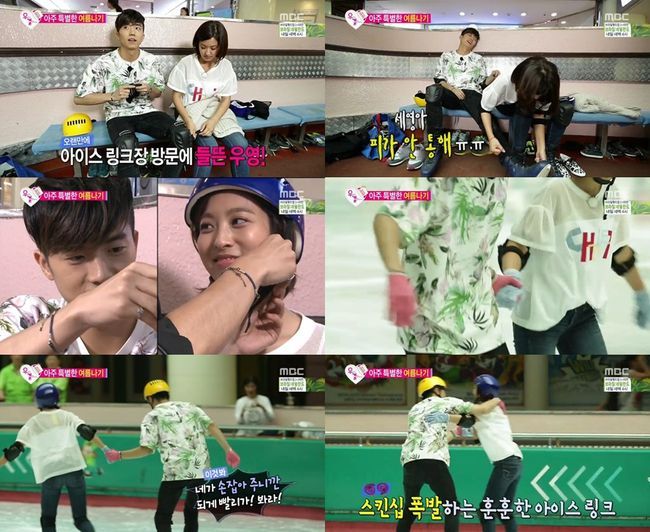 이날 방송에서 두 사람은 무더운 여름을 나기 위해 스케이트장을 찾았다. 오랜만에 온 스케이트장에 들뜬 두 사람은 서로의 안전장비를 체크해주며 달달한 모습을 보였다.