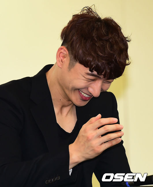 콘서트에 앞선 기자회견에서 손호영이 미소짓고 있다.
