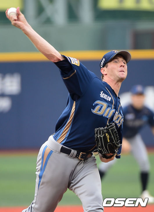 12일 오후 서울 목동야구장에서 열린 '2014 한국야쿠르트 세븐 프로야구' 넥센 히어로즈와 NC 다이노스의 경기, NC 선발 찰리가 힘차게 공을 뿌리고 있다.