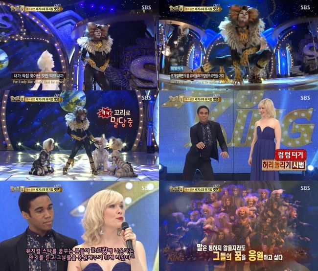 '캣츠'의 반항적인 고양이 럼텀 터거가 무대에 등장해 환상적인 무대를 꾸몄고 시청자들은 그 감동을 세계 4대 뮤지컬 중 하나를 안방에서 느끼는 기회를 가졌다.