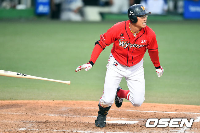 12일 오후 대구구장에서 열린 2014 한국야쿠르트 세븐 프로야구 삼성 라이온스와 SK 와이번스의 경기, 3회초 1사 만루 SK 박정권이 2타점 적시타를 날리고 있다.