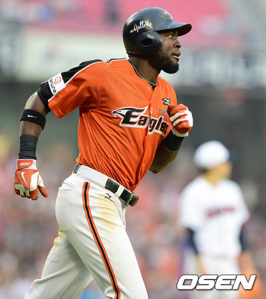 4회초 한화 공격 선두타자로 나선 피에가 우월 솔로포를 날리고 그라운드를 돌고 있다.