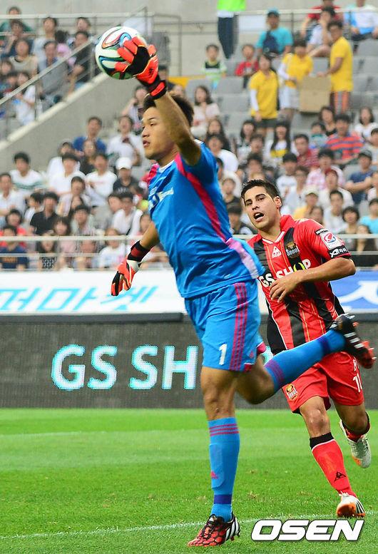 12일 오후 서울월드컵경기장에서 '현대오일뱅크 K리그 클래식 2014' 15라운드 FC 서울과 수원 삼성의 경기, 수원 정성룡이 공을 막아 내고 있다.