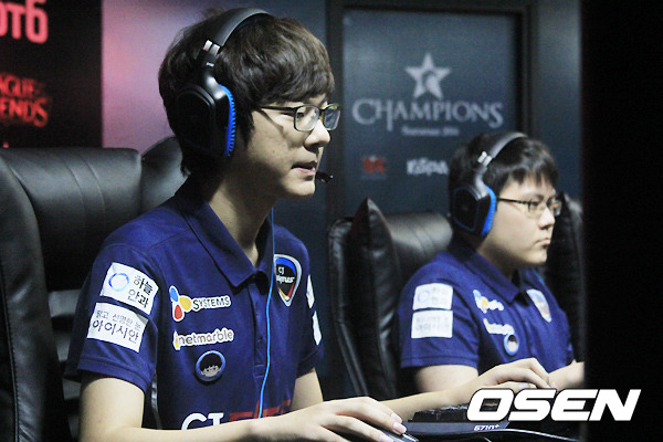 12일 서울 용산 온게임넷 e스포츠 상설경기장에서 'LOL 챔피언스(이하 롤챔스)' 서머 2014 16강 12회차 경기가 열렸다. 첫 경기에 나선 CJ 프로스트 간판스타 '매드라이프' 홍민기가 입을 꼭 다물고 경기에 임하고 있다.