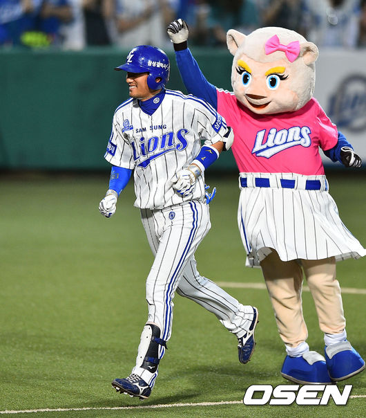 12일 오후 대구구장에서 열린 2014 한국야쿠르트 세븐 프로야구 삼성 라이온스와 SK 와이번스의 경기, 4회말 1사 2루 삼성 김상수가 2점 홈런을 날리고 베이스를 돌고 있다.