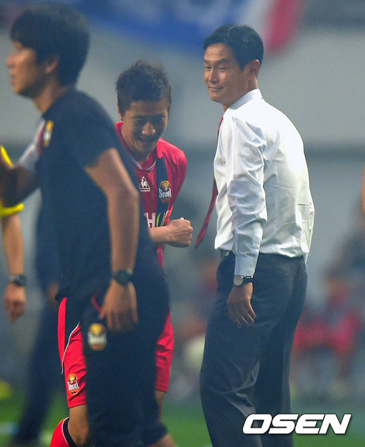 전반 서울 김진규가 선제골을 넣고 최용수 감독과 기뻐하고 있다.