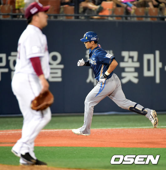 12일 오후 서울 목동야구장에서 열린 '2014 한국야쿠르트 세븐 프로야구' 넥센 히어로즈와 NC 다이노스의 경기, 9회초 1사 주자 1루 NC 조영훈이 우월 투런 홈런을 날린 후 그라운드를 돌고 있다.
