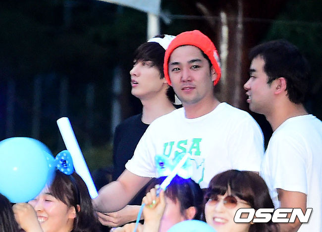 슈퍼주니어 강인 은혁이 콘서트장을 찾아 콘서트 시작을 기다리고 있다.