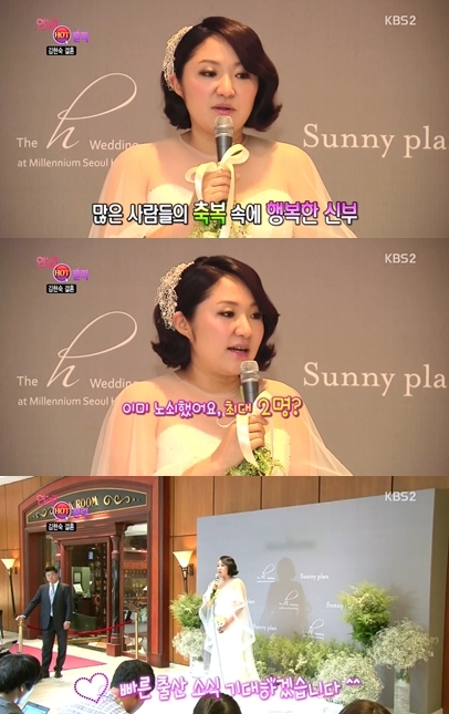 하지만 이어 결혼소감을 얘기하면서 “될 수 있는대로 많이 낳고 행복하게 잘 겠다”라고 말하며 행복한 신부의 모습을 보였다.