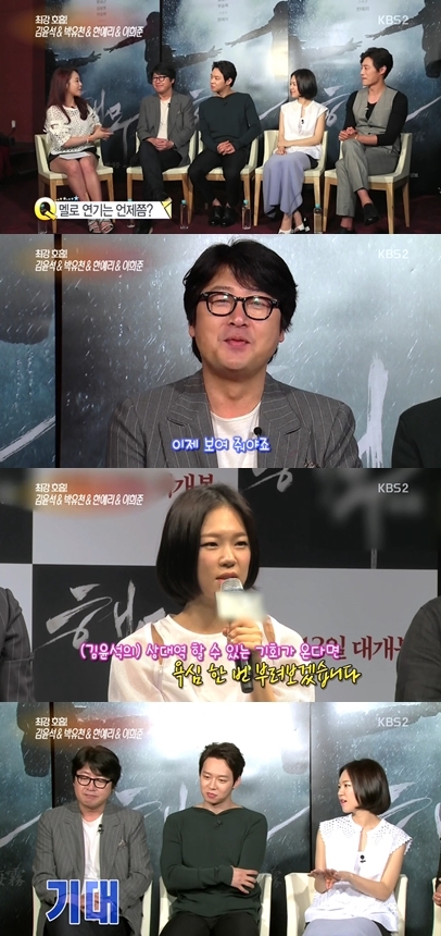 김윤석은 12일 방송된 KBS 2TV '연예가중계'와의 인터뷰에서 멜로 연기는 언제쯤 볼 수 있냐는 리포터의 질문에 “이제 보여 줄 것이다”며 멜로 연기 도전을 예고했다.