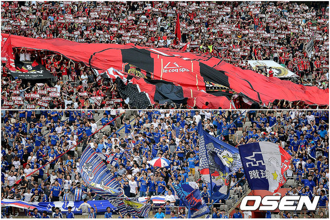 서울 수원 서포터즈가 열띤 응원을 하고 있다./ jpnews@osen.co.kr