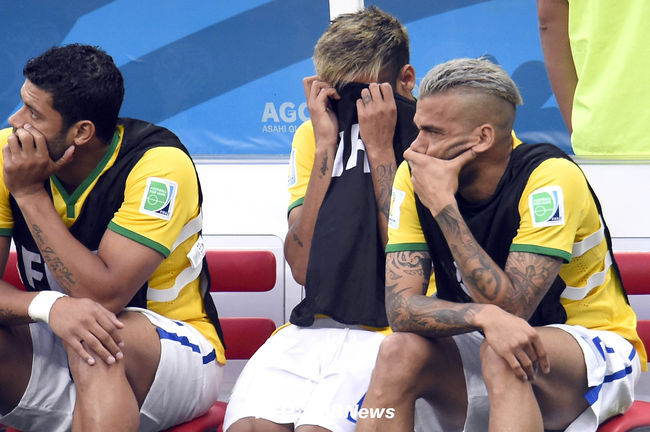 [OSEN=사진팀] 13일 오전(한국시간) 브라질 나시오날 경기장에서 벌어진 '2014 브라질월드컵' 3-4위전 브라질과 네덜란드의 경기,전반 초반 2실점을 하자 네이마르가 눈을 가리고 있다.