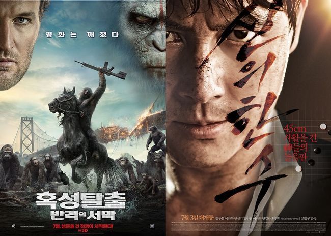 변칙개봉 논란에 휩싸였지만 전작에 비해 한층 더 묵직해진 주제로 돌아온 '혹성탈출'은 일단 개봉 첫 주말 '신의 한 수'와의 대결에서 승리를 거두며 올 여름 할리우드 블록버스터의 파상 공세를 예고했다.