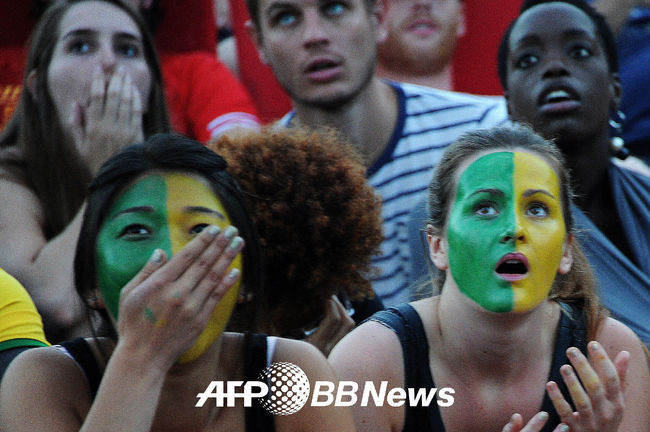 후반 막판 세번째 골을 허용하자 브라질 팬들이 침통한 표정을 짓고 있다./photo@osen.co.kr
