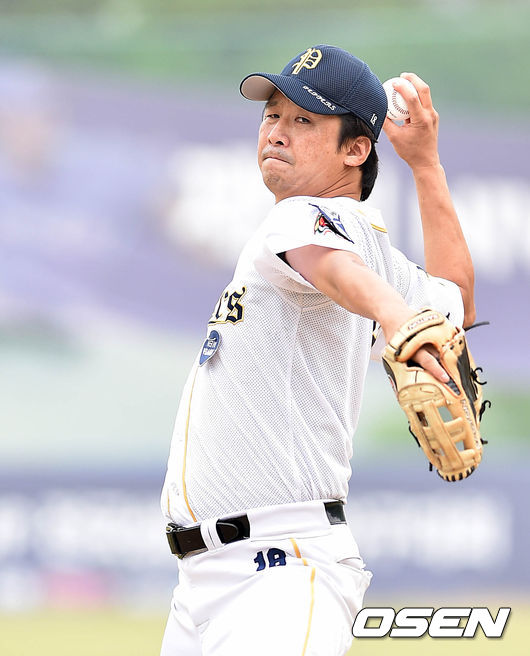 1회초 무사에서 SP페퍼스 선발투수가 힘차게 공을 던지고 있다.