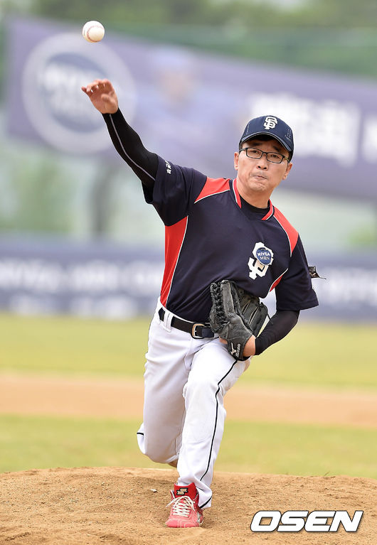 1회말 무사에서 서울소방파이어 선발투수 김환이 힘차게 공을 던지고 있다.