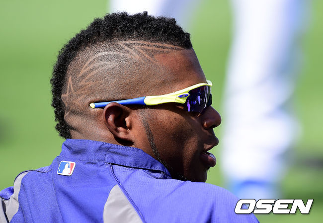 13일(한국시간) 미국 캘리포니아주 로스앤젤레스 다저스타디움에서 열리는 '2014 메이저리그' LA 다저스와 샌디에이고 파드리스와의 경기에 앞서 다저스 푸이그가 스트레칭을 하고 있다.