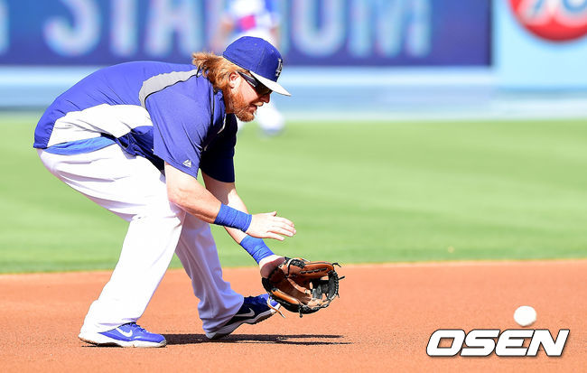 13일(한국시간) 미국 캘리포니아주 로스앤젤레스 다저스타디움에서 열리는 '2014 메이저리그' LA 다저스와 샌디에이고 파드리스와의 경기에 앞서 다저스 터너가 내야 펑고를 받고 있다.