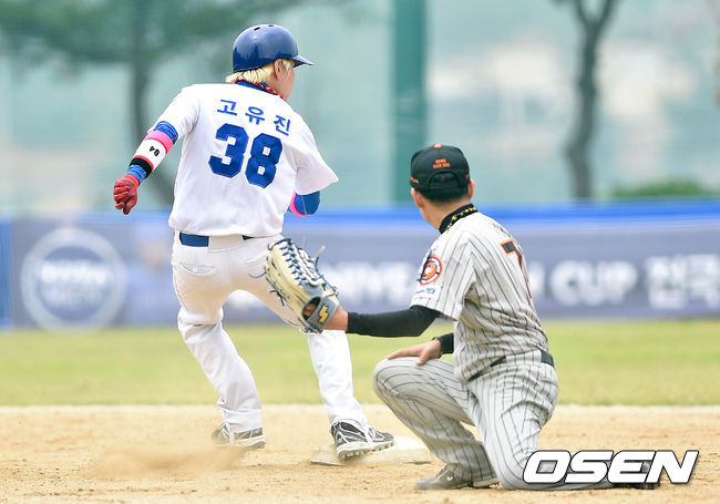 3회초 1사에서 도루를 시도한 폴라베어스 1루주자 고유진이 2루에서 공이빠지자 3루로 향하고 있다.