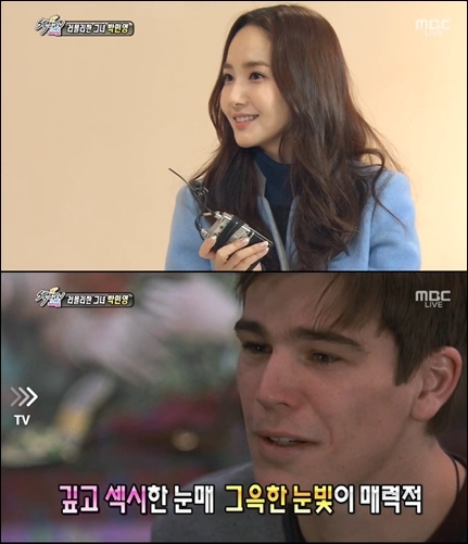 박민영은 13일 방송된 MBC '섹션TV 연예통신'에서 같이 연기하고 싶은 배우가 있냐는 리포터의 질문에 이와 같이 말하며 "깊고 섹시한 눈매와 그윽한 눈빛이 매력적이다"라고 이유를 밝혔다.