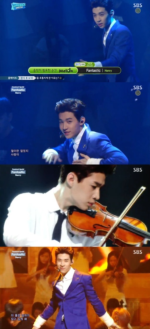 헨리는 13일 오후 방송된 SBS '인기가요'에서 신곡 '판타스틱(Fantastic)'을 열창하며 컴백 무대를 꾸몄다.