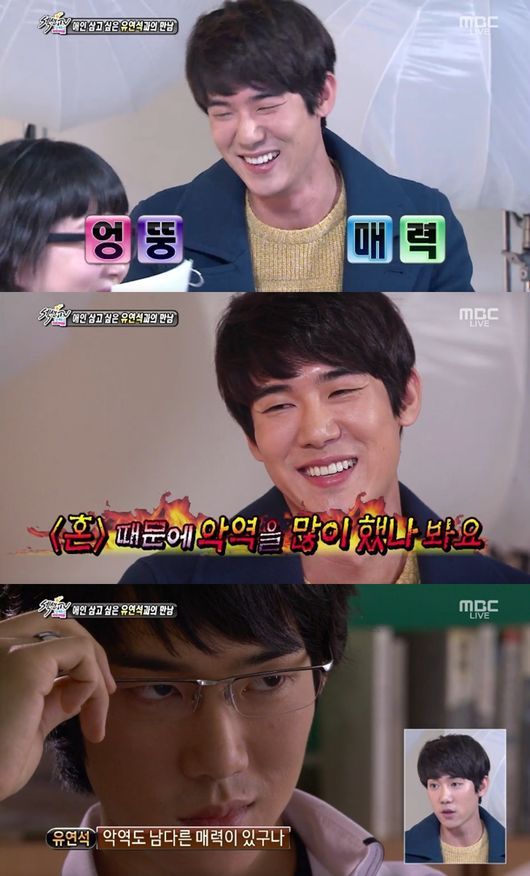 유연석은 13일 오후 방송된 MBC ‘섹션TV 연예통신’에서 지난 시간 맡은 역할들을 되짚다가 MBC 드라마 ‘혼’ 이야기가 나오자 “이것 때문에 악역을 많이 한 것 같다”며 웃었다.
