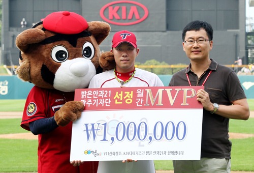 이날 시상은 밝은안과21병원 김덕배 원장이 했고, 시상금은 100만원이다. 안치홍은 시상금 중 50만원을 불우이웃돕기 성금으로 기부했다.