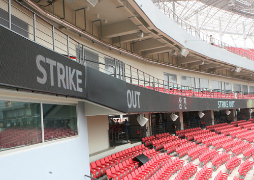 16억원이 투입된 띠 전광판은 외야석을 제외한 1루에서 3루까지 265m에 달하며 국내 최대 규모를 자랑한다. KIA는 띠 전광판을 응원과 이벤트 등 다양한 방법으로 활용해 팬들에게 즐거움을 선사할 방침이다.