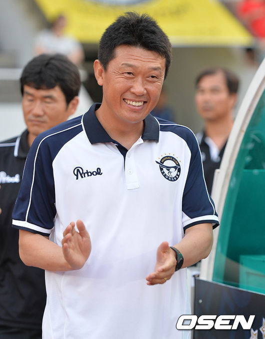 경기에 앞서 성남 이상윤 감독이 그라운드로 들어가고 있다.