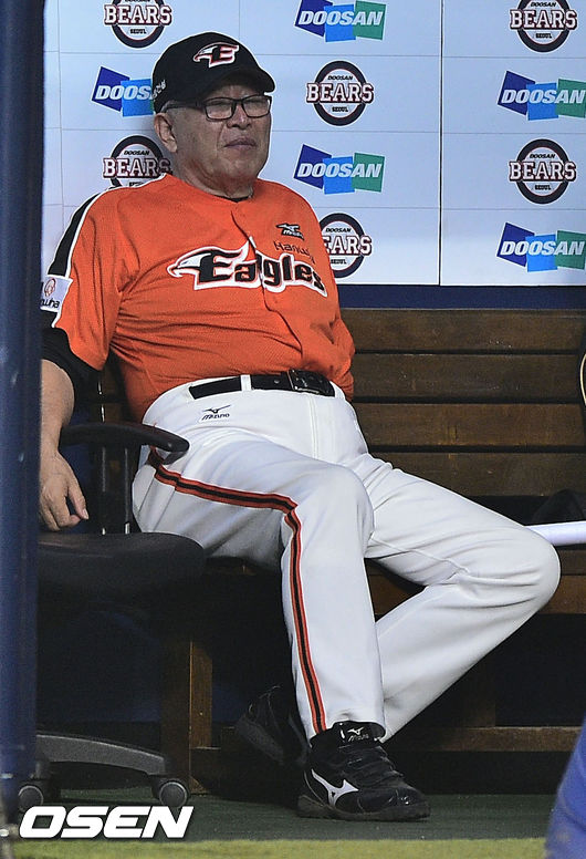 13일 오후 서울 잠실구장에서 열린 2014 한국야쿠르트 세븐 프로야구 두산 베어스와 한화 이글스의 경기 8회초 역전 찬스를 놓친 한화 김응용 감독이 아쉬워하고 있다.