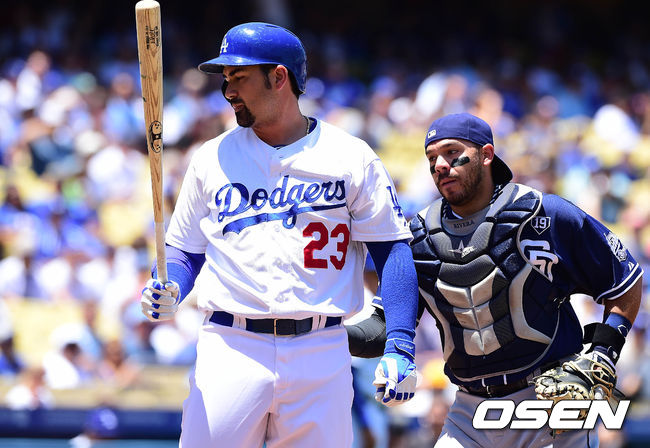 14일(한국시간) 미국 캘리포니아주 로스앤젤레스 다저스타디움에서 열린 '2014 메이저리그' LA 다저스와 샌디에이고 파드리스의 경기, 1회말 2사 2루에서 다저스 곤잘레스가 삼진으로 물러나고 있다.