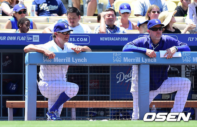 14일(한국시간) 미국 캘리포니아주 로스앤젤레스 다저스타디움에서 열린 '2014 메이저리그' LA 다저스와 샌디에이고 파드리스의 경기, 다저스 매팅리 감독이 경기를 바라보고 있다.