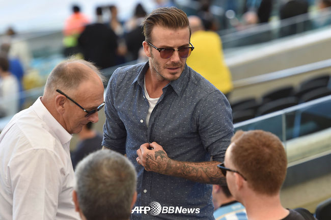 베컴이 결승전을 찾아 경기를 지켜보고 있다.