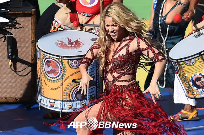 폐막식 무대에 오른 샤키라가 멋진 공연을 펼치고 있다.