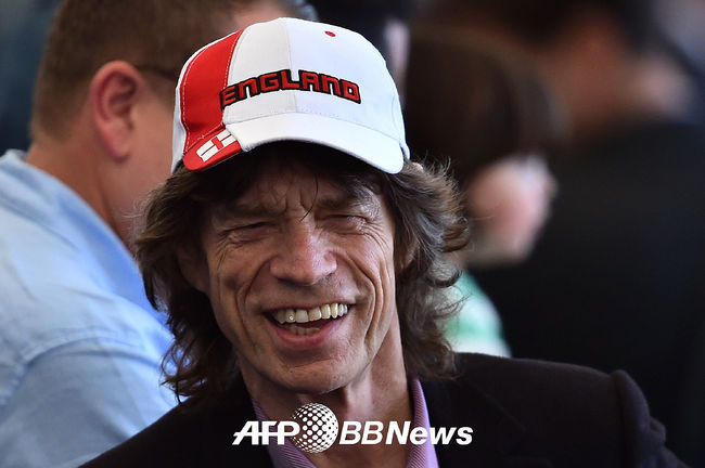 믹 재거가 결승전을 찾아 환하게 미소짓고 있다.