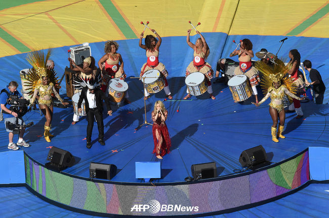 폐막식 무대에 오른 샤키라와 댄서들이 멋진 무대를 펼치고 있다./photo@osen.co.kr