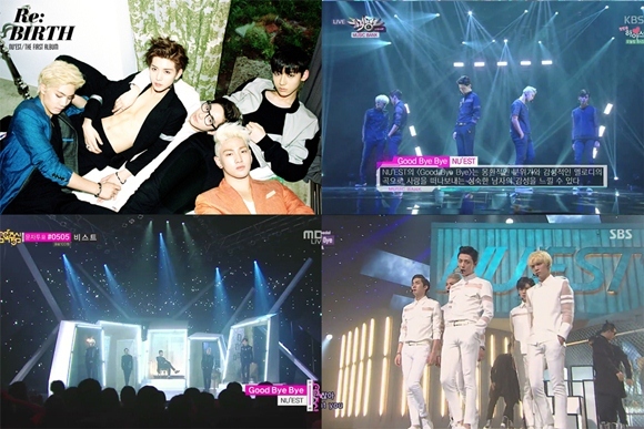 특히 뉴이스트는 각 방송마다 다른 콘셉트로 타이틀곡 '굿 바이 바이(Good Bye Bye)'의 무대를 꾸며 눈길을 끌었다. 특유의 몽환적이고 서정적인 분위기를 잘 살리면서도 각 방송사마다의 특별한 느낌을 살려낸 특별한 무대를 완성한 것.