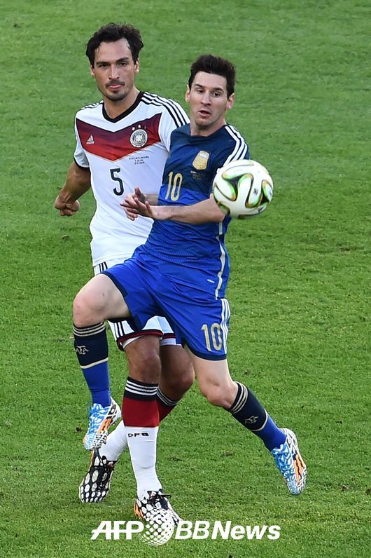 리오넬 메시(앞)-마츠 후멜스(뒤)ⓒAFPBBNews = News1