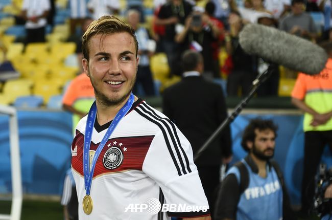 결승골의 주인공 괴체가 우승 메달을 목에 걸고 미소를 지어보이고 있다 ./photo@osen.co.kr
