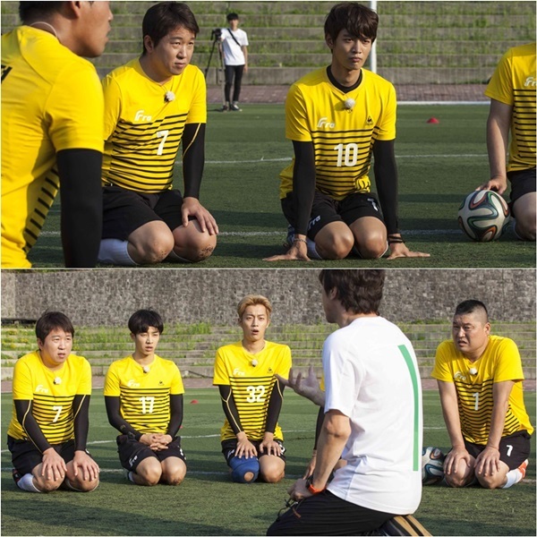 또 정형돈과 윤두준, 이기광은 허리를 꼿꼿이 세운 정자세로 신태용 코치의 이야기를 경청하고 있는데, 두 눈 크게 뜬 윤두준의 표정을 통해 그가 얼마나 훈련에 집중하고 있는지 알게 한다.