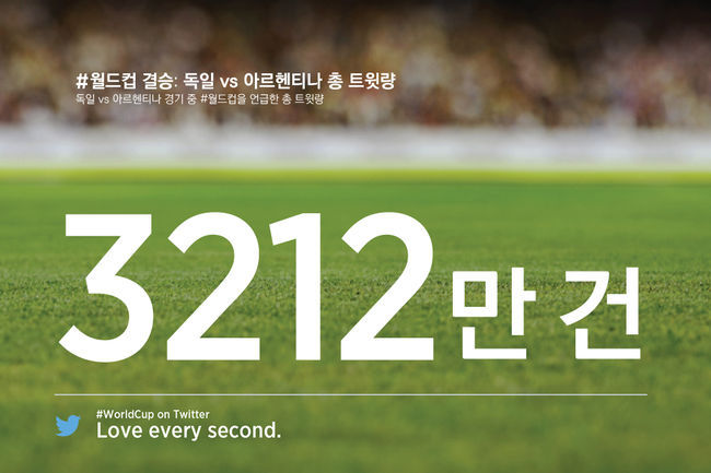 트위터 코리아가 14일(이하 한국시간) 오전 4시에 펼쳐진 독일-아르헨티나 월드컵 결승전 한 시간 전인 3시부터 7시 30분까지 전 세계에서 발생한 월드컵 관련 트윗량을 집계한 결과 무려 총 3,212만 349건을 기록했다.