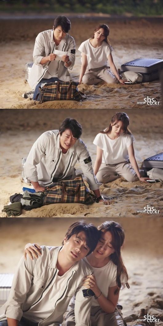 권상우, 박하선은 14일 '유혹' 측이 공개한 사진에서 바닷가 모래사장 위 누군가의 편지를 읽고 망연자실한 표정으로 눈물을 흘리고 있다.