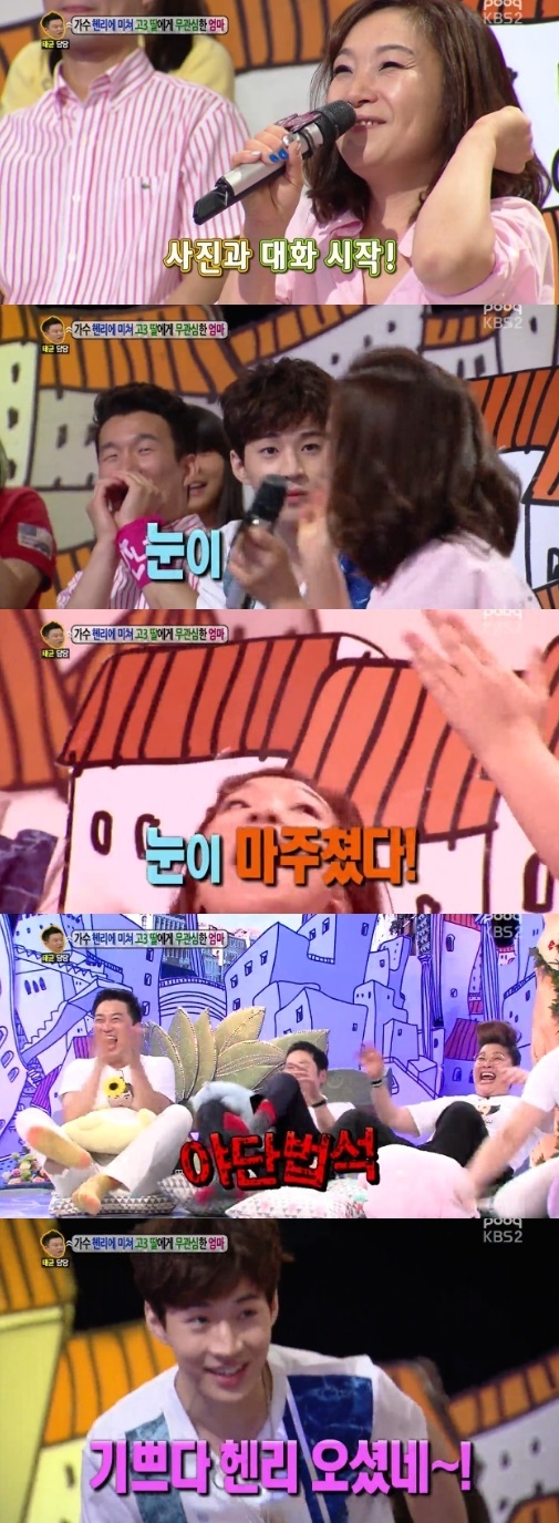 또한 엄마는 스튜디오에 등장한 헨리의 사진에 열광하면서 사진과 대화를 이어갔는데, 그 뒤로 실제 헨리가 등장하자 엄청나게 놀라 비명을 질러 좌중을 폭소케 했다.