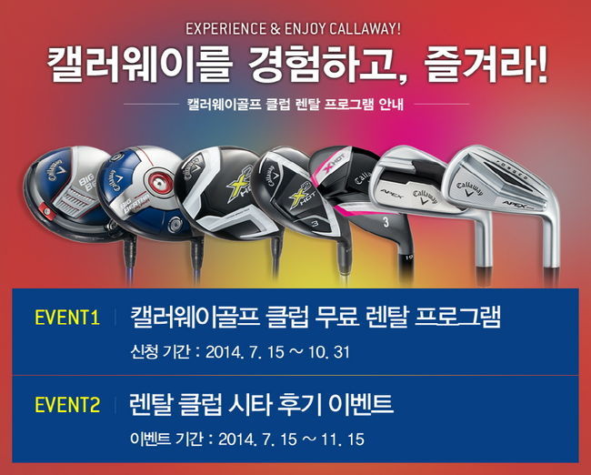 골프전문 브랜드 캘러웨이골프는 골퍼들의 현명한 클럽 선택을 돕기 위해 무료 클럽 렌탈 프로그램 ‘EXPERIENCE & ENJOY CALLAWAY!(캘러웨이를 경험하고, 즐겨라!)’를 확대 실시한다고 15일 밝혔다.