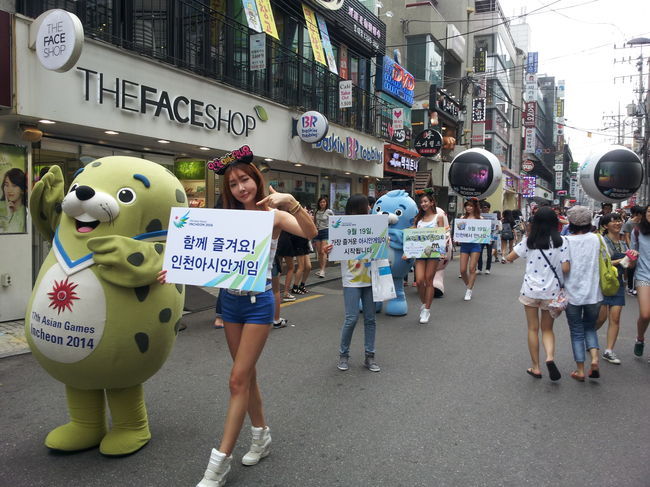 AG홍보단은 지난 12일 유동인구가 많은 서울 명동과 홍대 걷고 싶은 거리 야외무대에서 대회 마스코트인 물범3남매 사진촬영, 전문 레이싱 모델 퍼레이드, 인천전자랜드 프로농구단 치어리더 ‘팜팜’의 치어리딩 퍼포먼스 등 다양하고 아이디어 넘치는 게릴라 프로모션을 펼치며 시민들의 주목을 끌었다.