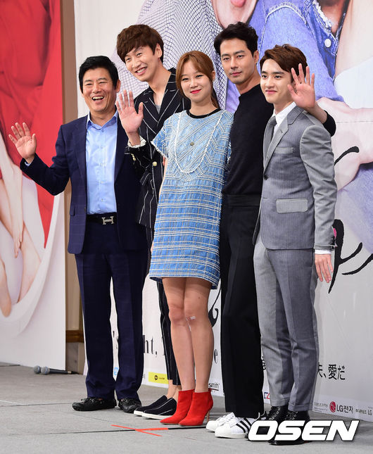 15일 오후 서울 논현동 임피리얼 펠리스호텔에서 열린 SBS 드라마 '괜찮아, 사랑이야' 제작발표회에서 성동일, 이광수, 공효진, 조인성, 도경수가 포토타임을 갖고 있다.