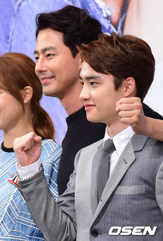 15일 오후 서울 논현동 임피리얼 펠리스호텔에서 열린 SBS 드라마 '괜찮아, 사랑이야' 제작발표회에서 조인성과 도경수가 포토타임을 갖고 있다.