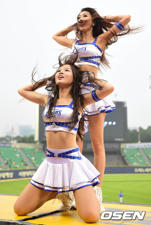 15일 오후 서울 잠실구장에서 열린 '2014 한국야쿠르트 세븐 프로야구' LG 트윈스와 삼성 라이온즈의 경기, 삼성 치어리더들이 공연을 펼치고 있다.