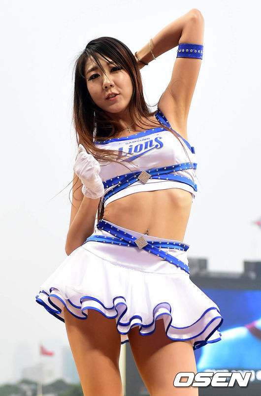 15일 오후 서울 잠실구장에서 열린 '2014 한국야쿠르트 세븐 프로야구' LG 트윈스와 삼성 라이온즈의 경기, 삼성 치어리더들이 공연을 펼치고 있다.