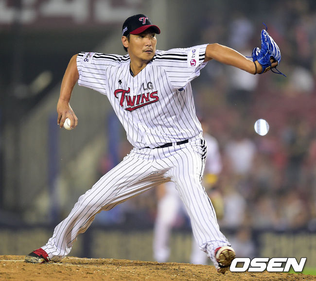 15일 오후 서울 잠실구장에서 열린 '2014 한국야쿠르트 세븐 프로야구' LG 트윈스와 삼성 라이온즈의 경기 9회초 이동현이 역투를 펼치고 있다.